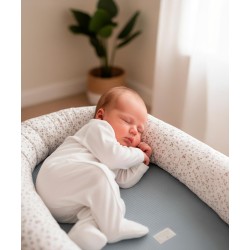 Este cojín nido colecho, es un producto versátil que abraza a su niño y proporciona una atmósfera segura evitando corrientes de aire; se puede utilizar como un reductor en la cuna, como un lugar seguro para jugar en el suelo junto al bebé o en una cuna de viaje.